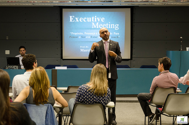 A área de Procurement do Banco HSBC recebeu em sua reunião trimestral a visita do Professor Marciano Cunha nesse dia 17 de abril de 2015. A proposta subjacente à fala de Cunha foi promover reflexão sobre a automotivação e a resiliência dos profissionais em contextos dinâmicos nos quais as Organizações estão imersas. O diálogo conduzido foi intitulado de Propósito, Presença e Intensidade: para pensar o SER e o ESTAR no mundo touch. Durante o diálogo, os participantes foram convidados a pensar sobre seu protagonismo no exercício de suas atividades no ambiente organizacional.