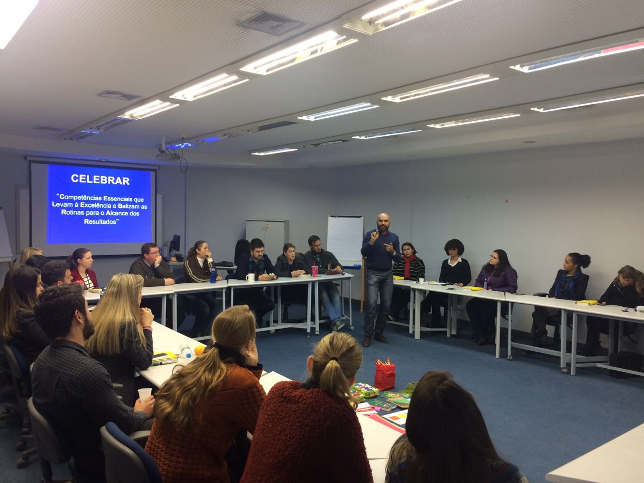 O tema da palestra foi "C.E.L.E.B.R.A.R.: Competências Essenciais que Levam à Excelência e Balizam as Rotinas para o Alcance dos Resultados".