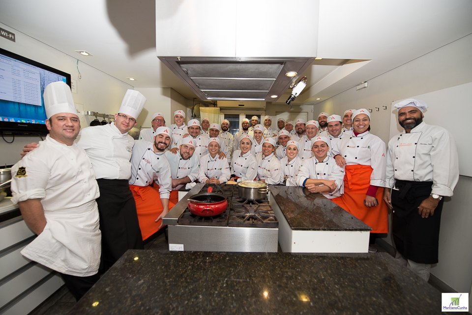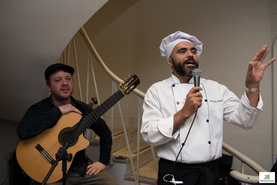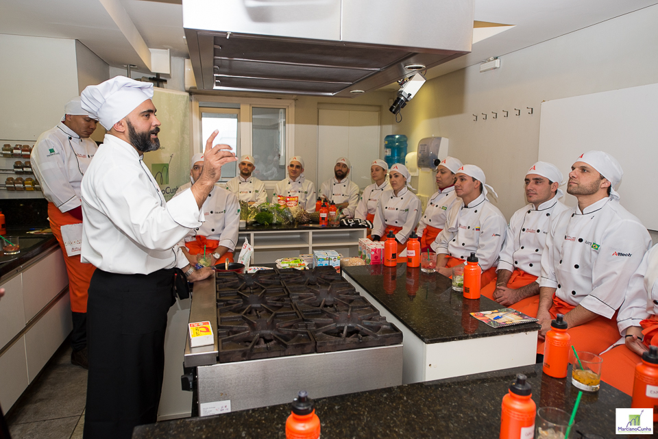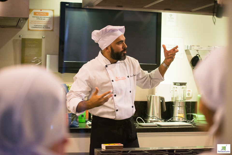 O Professor Marciano Cunha contou com a presença dos chefs de cuisine Daniel André, que veio de Joinville para supervisionar a atividade, e Paulinho Sabbag, coordenador do Espaço Gourmet Escola de Gastronomia, local utilizado para a Oficina Gastronômica.