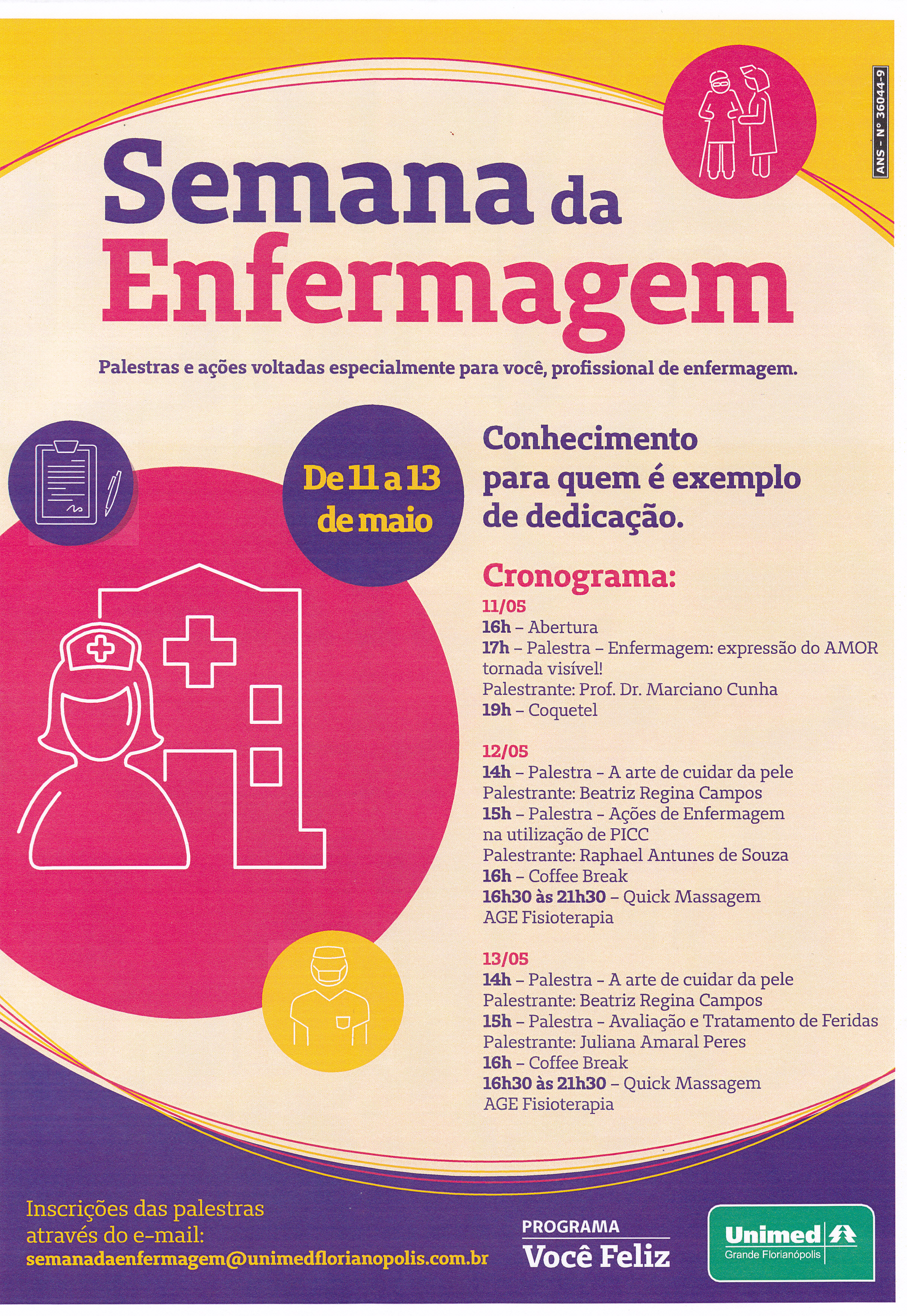 Em Florianópolis, no Hospital Unimed, foi realizada a Semana da Enfermagem entre os dias 11 e 13 de maio. O evento contou com palestras e ações voltadas para os profissionais da área.